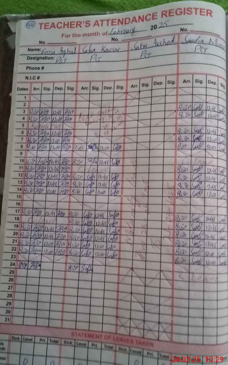 | CNIC | Full Name | Designation | R/C | Absence During Last Calender Month |
