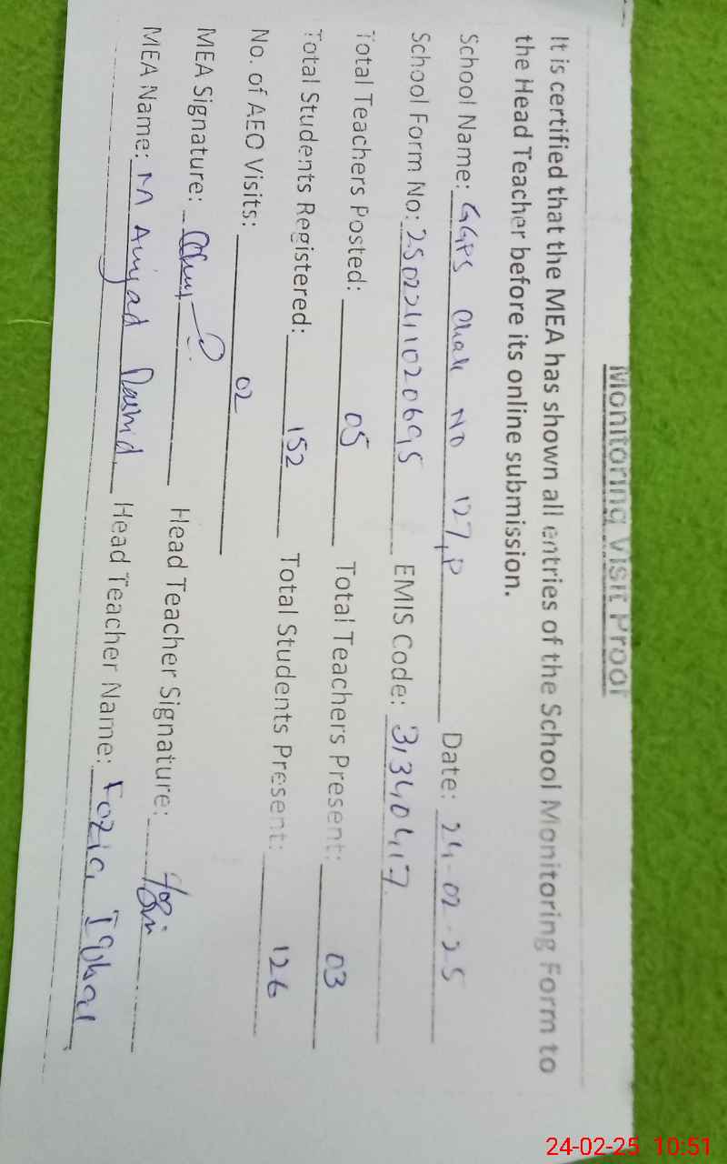 | EMIS Code: 31340417 | Name of School: GGPS 127/P | |||