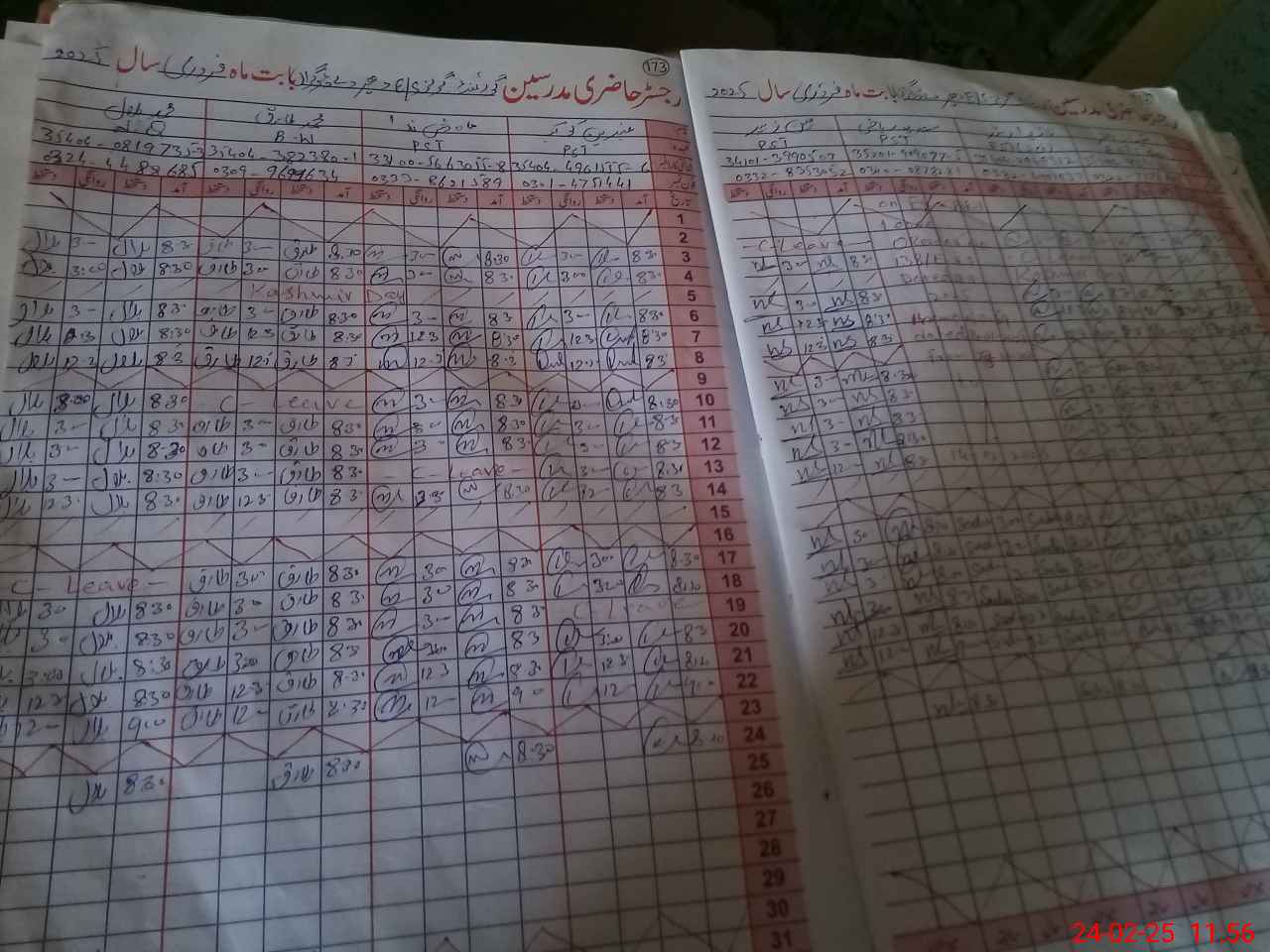 | CNIC | Full Name | Designation | R/C | Absence During Last Calender Month |