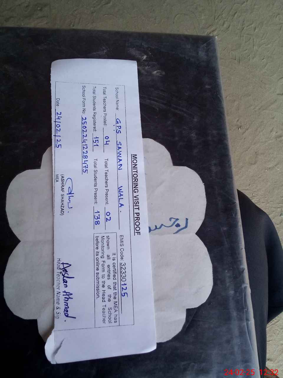 | EMIS Code: 32330125 | Name of School: GPS SAWAN WALA | |||