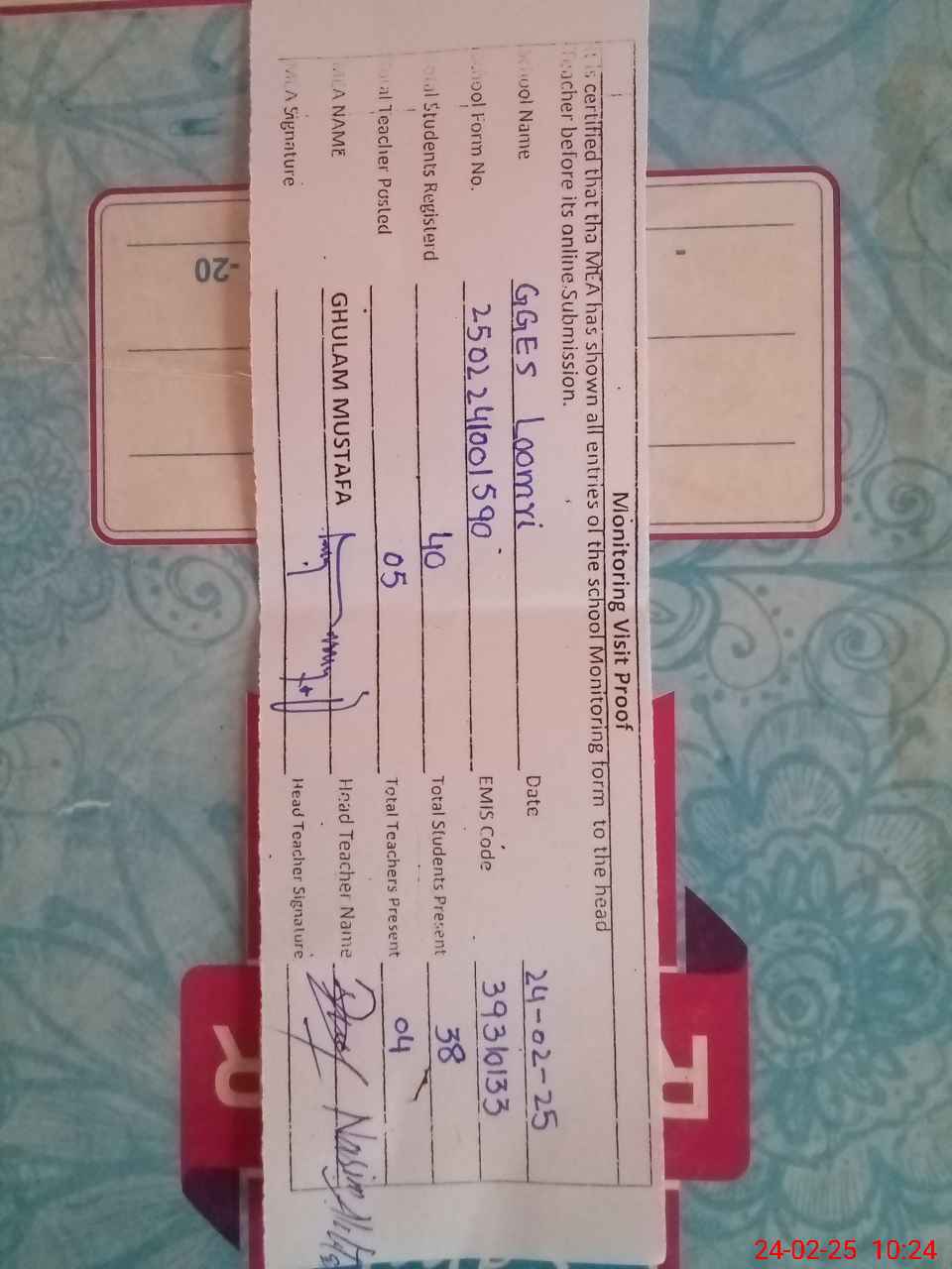 | Certified that this School was Inspected by the Undersigned MEA/DMO Today and the Information Stated Above is as Per Record. | |||||