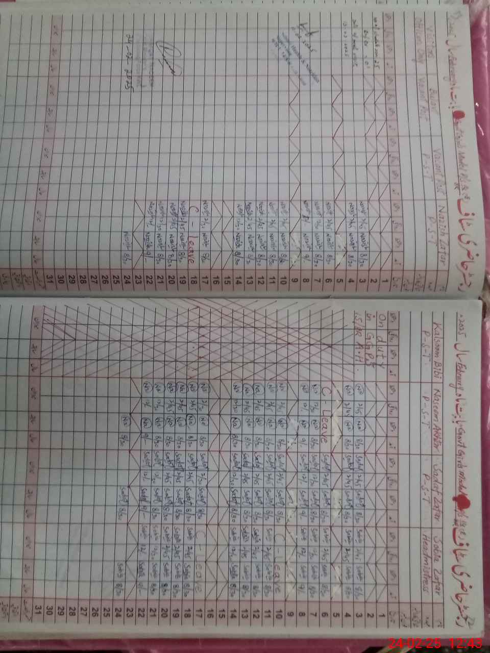 | Leave | Duty | Absent | Maternity | Medical | Ex- Pak |