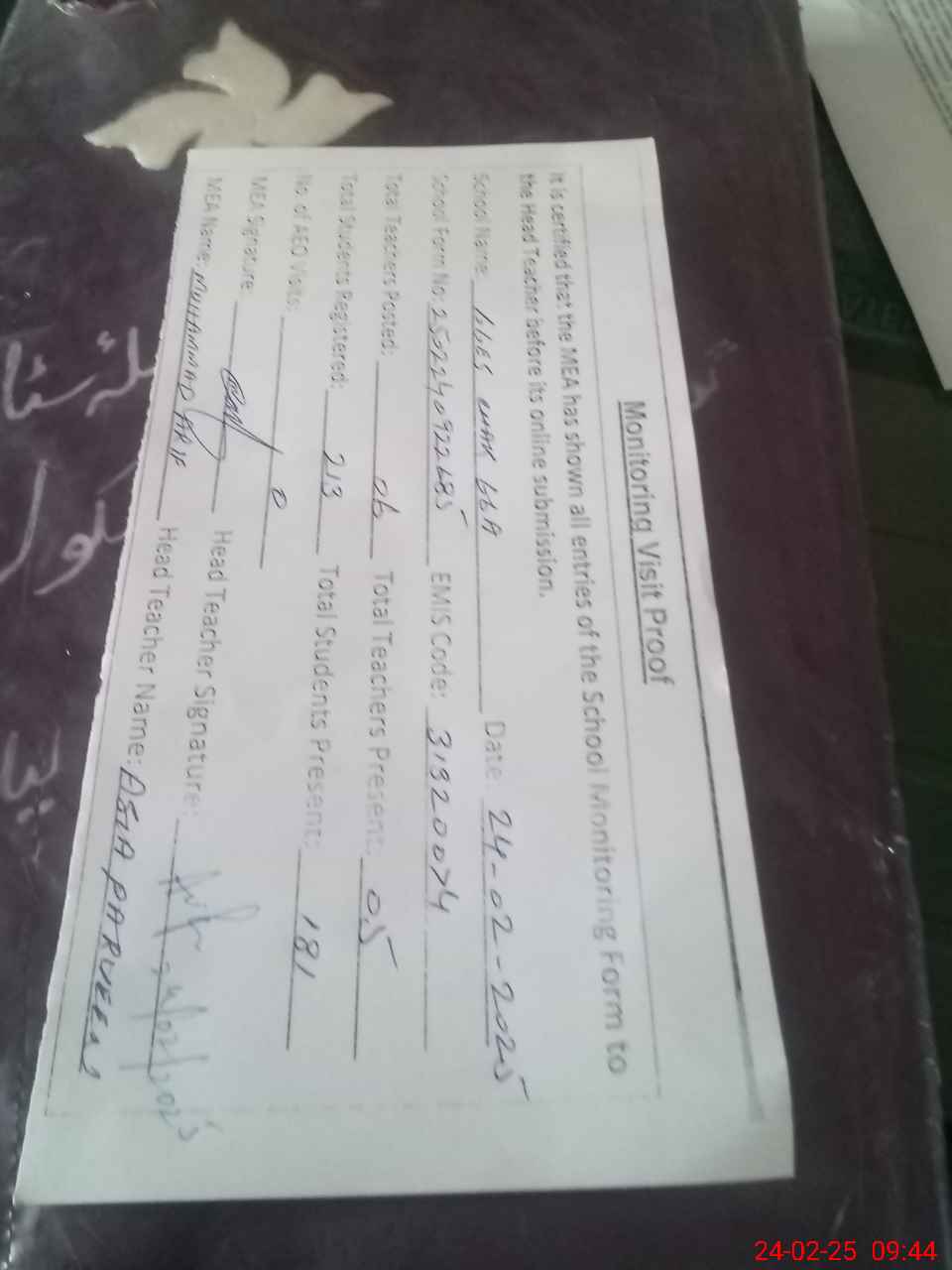 | Certified that this School was Inspected by the Undersigned MEA/DMO Today and the Information Stated Above is as Per Record. | |||||