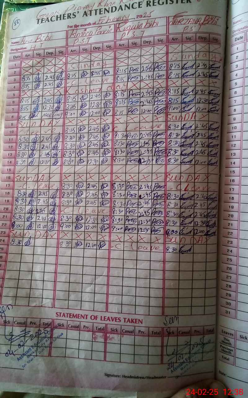 | Name: Az**** Bi**** Designation: (School Headmaster's/Headmistress's) PST Phone/Cell Number: 03**** |