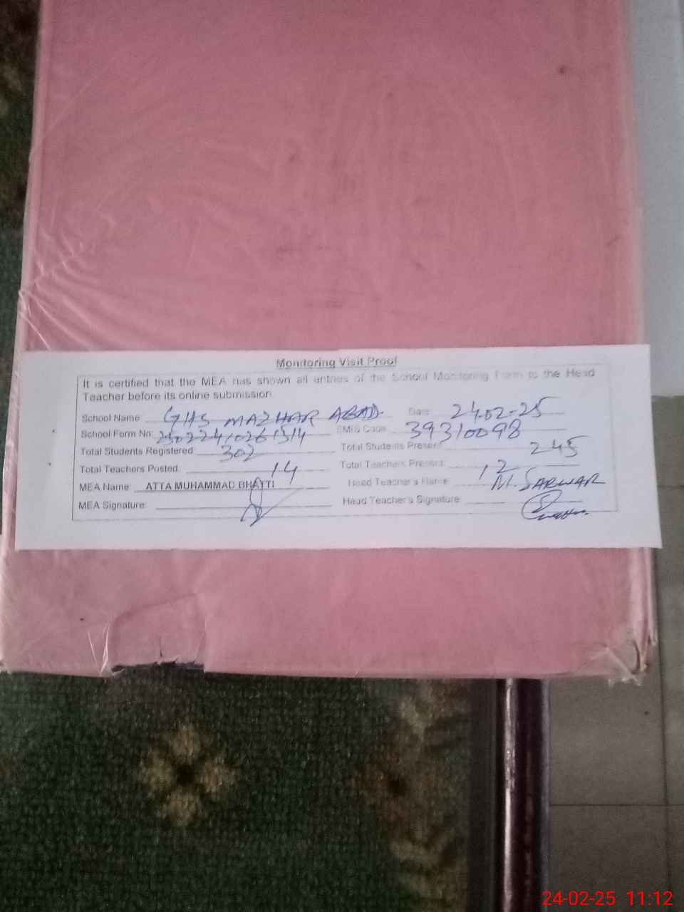 | EMIS Code: 39310098 | Name of School: GHS MAZHAR ABAD | |||