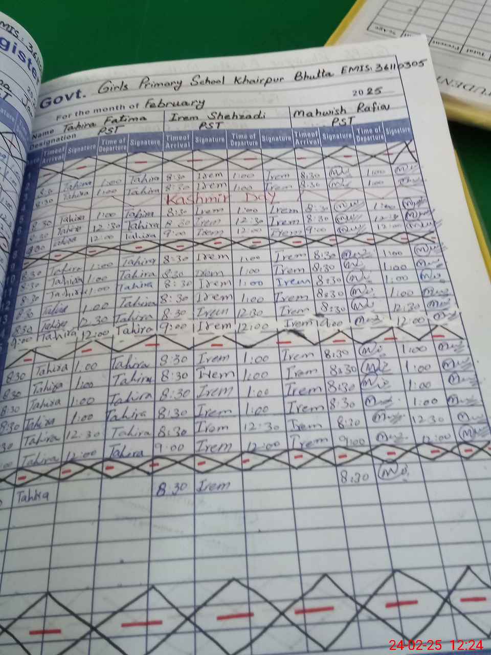 | CNIC | Full Name | Designation | R/C | Absence During Last Calender Month |