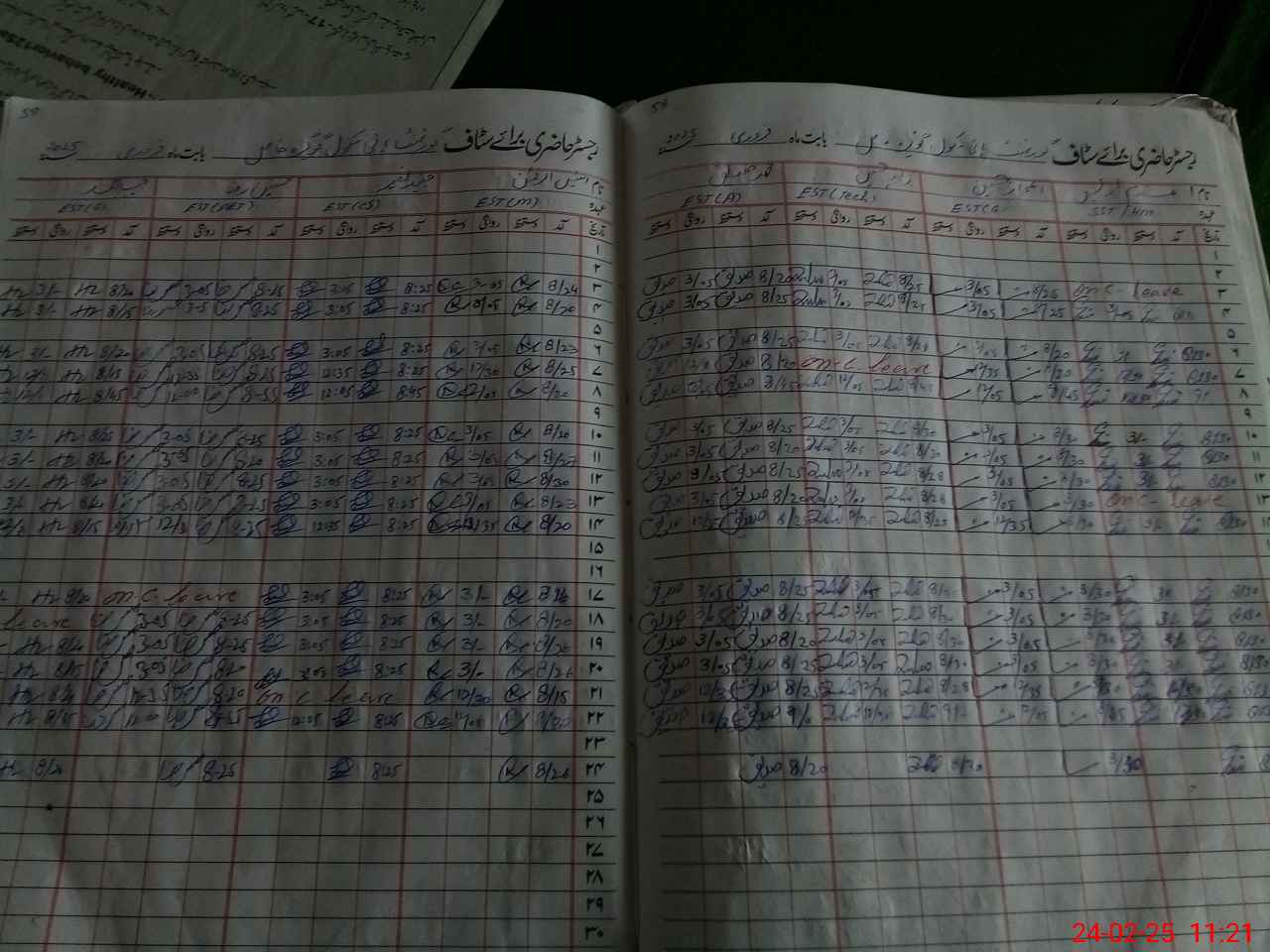 | Leave | Duty | Absent | Maternity | Medical | Ex- Pak |