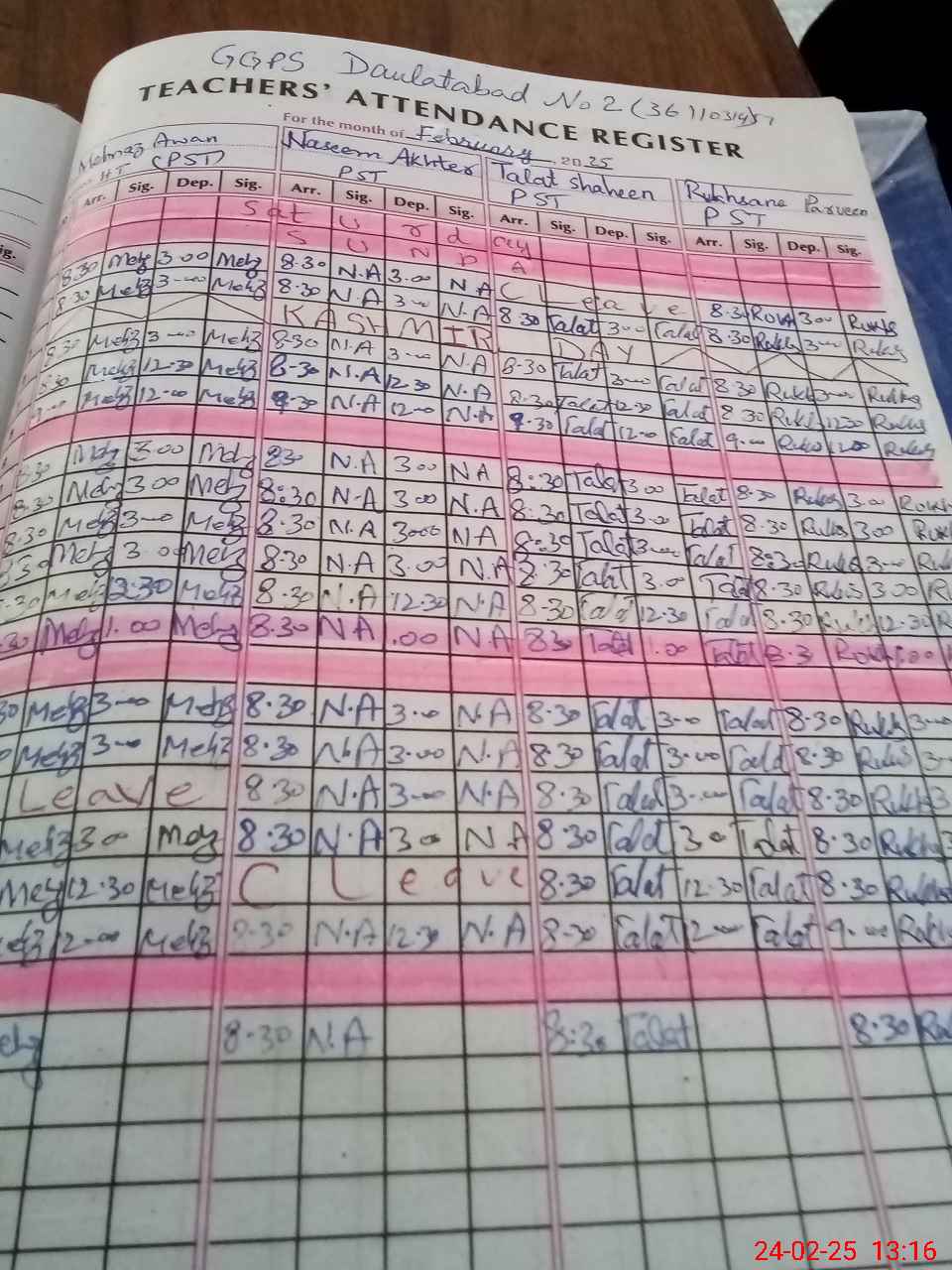 | CNIC | Full Name | Designation | R/C | Absence During Last Calender Month |