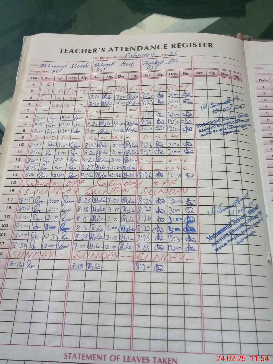 | Name: Mu**** Sh**** Designation: (School Headmaster's/Headmistress's) PST Phone/Cell Number: 03**** |