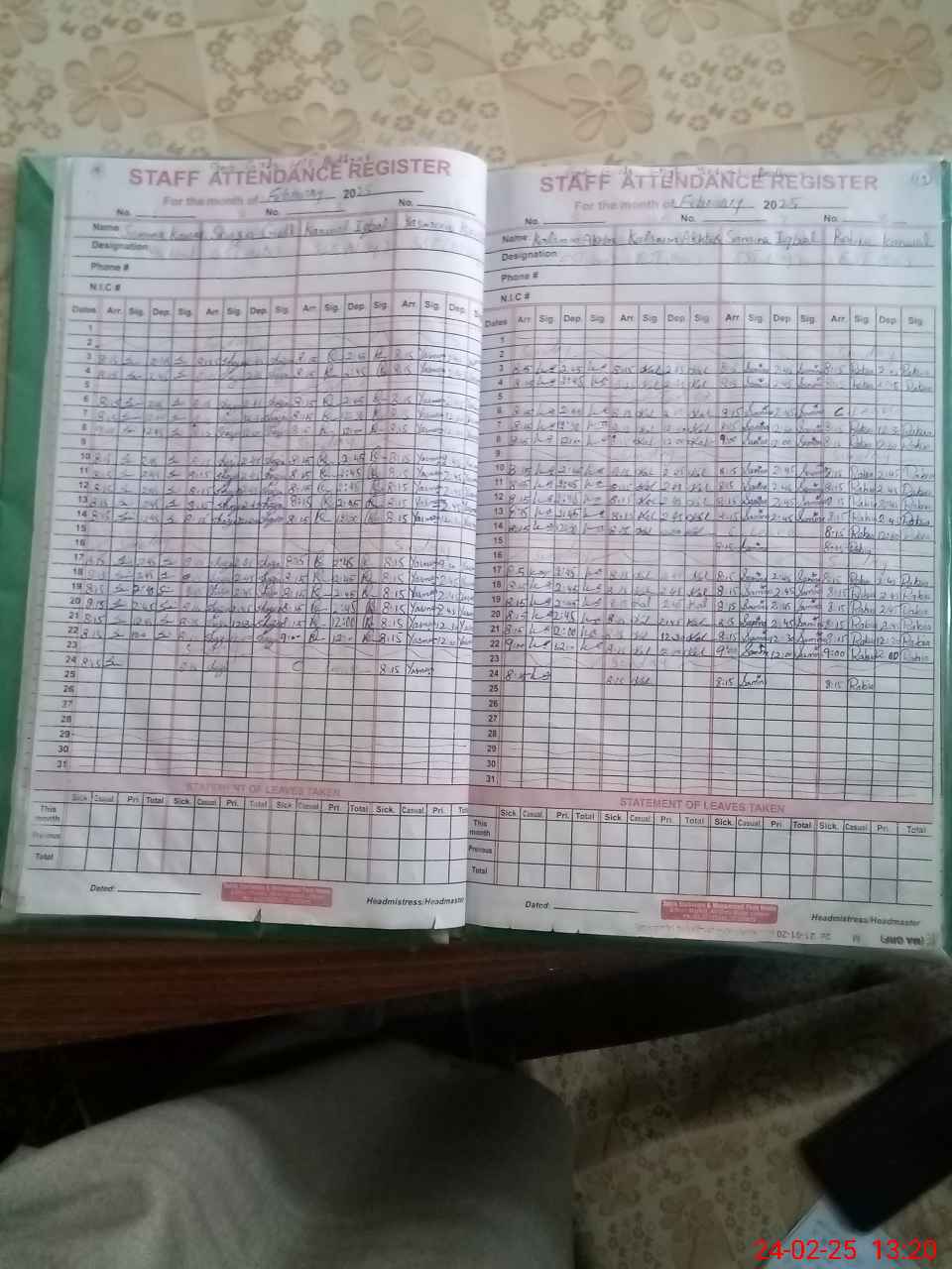 | CNIC | Full Name | Designation | R/C | Absence During Last Calender Month |