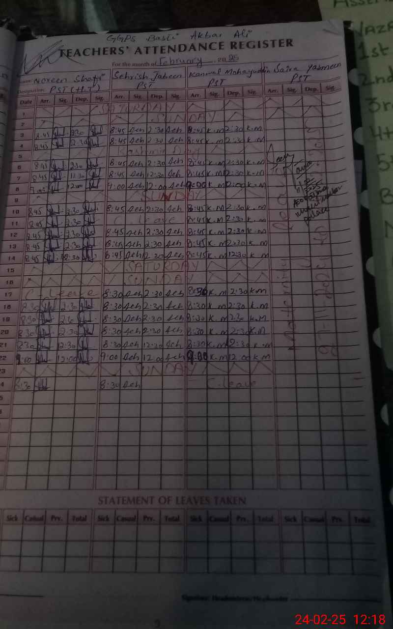 | Name: No**** Sh**** Designation: (School Headmaster's/Headmistress's) PST Phone/Cell Number: 03**** |