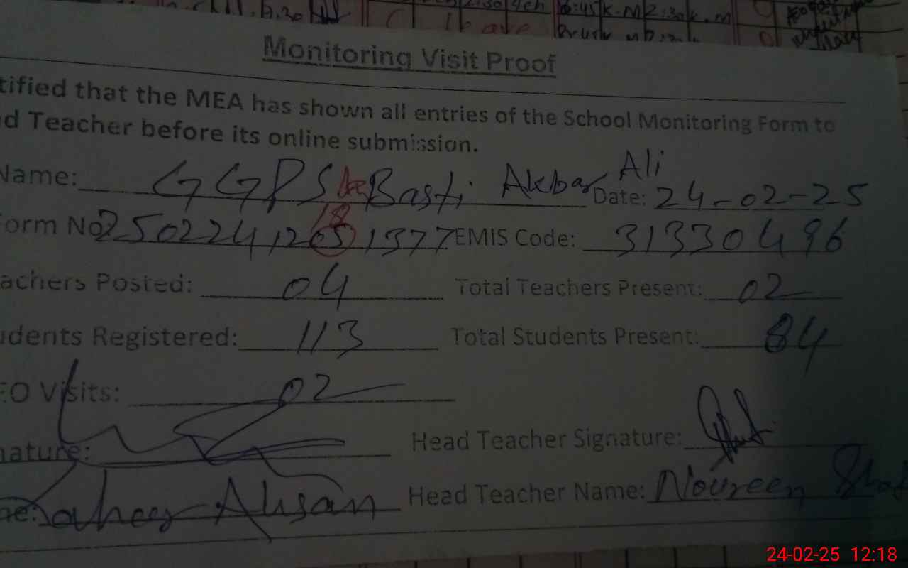 | EMIS Code: 31330496 | Name of School: GGPS BASTI AKBAR ALI | |||