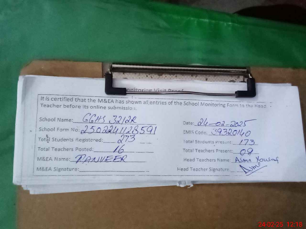 | EMIS Code: 39320140 | Name of School: GGHS 32/2-R OKARA | |||