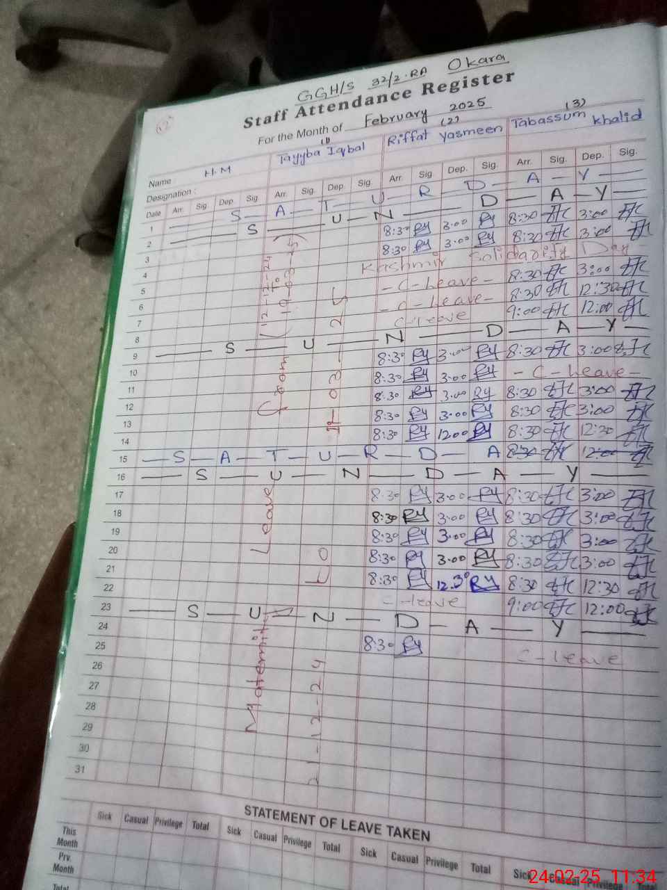 | 36**** | Sa**** Ka**** | PST | Regular | 2 | 0 | 0 | 0 | 0 | 0 | 0 | 0 | 2 | Maternity |