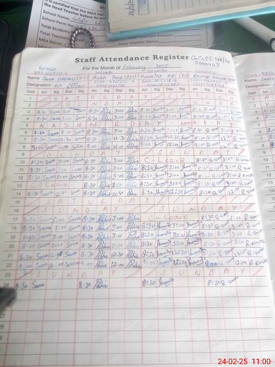 | Name: Sa**** Fi**** Designation: (School Headmaster's/Headmistress's) PST Phone/Cell Number: 03**** |