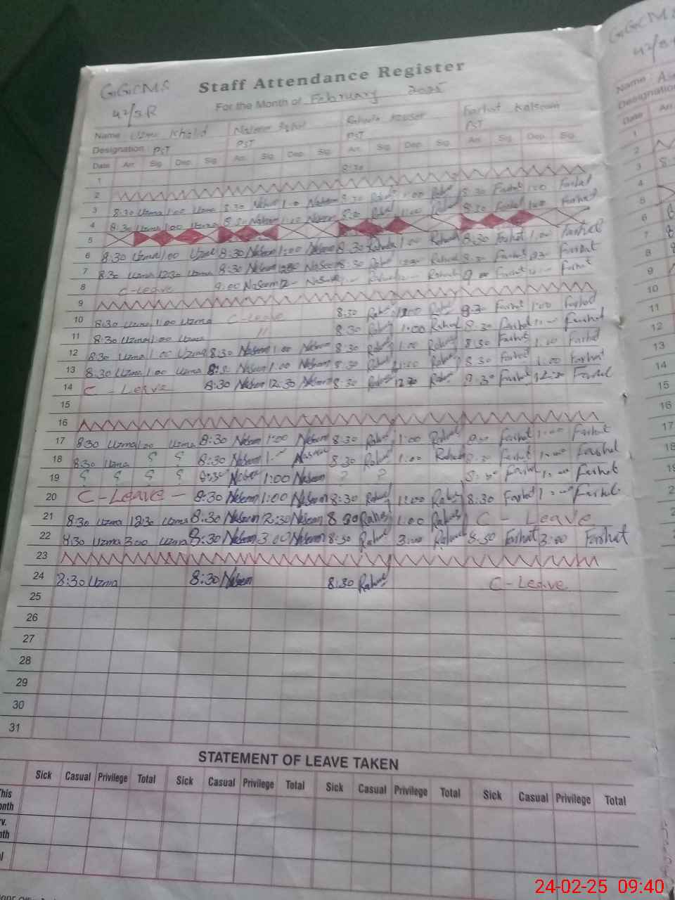 | Leave | Duty | Absent | Maternity | Medical | Ex- Pak |