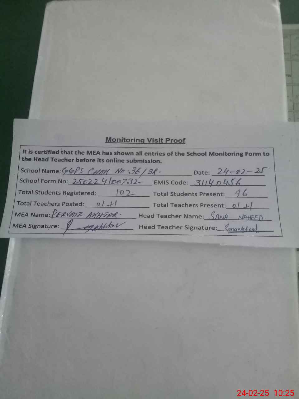 | EMIS Code: 31140456 | Name of School: GGPS CHAK NO. 36/3-R | |||