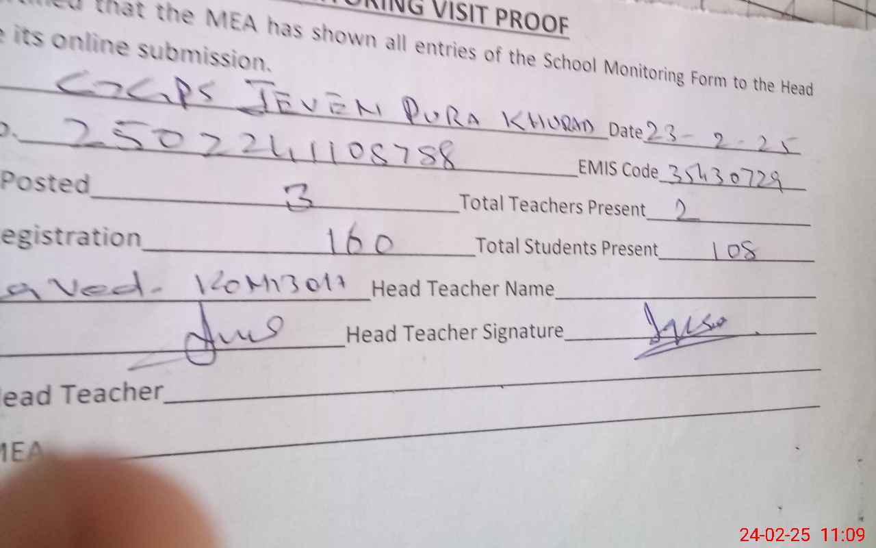 | EMIS Code: 35430729 | Name of School: GGPS JEVEN PURA KHURD | |||
