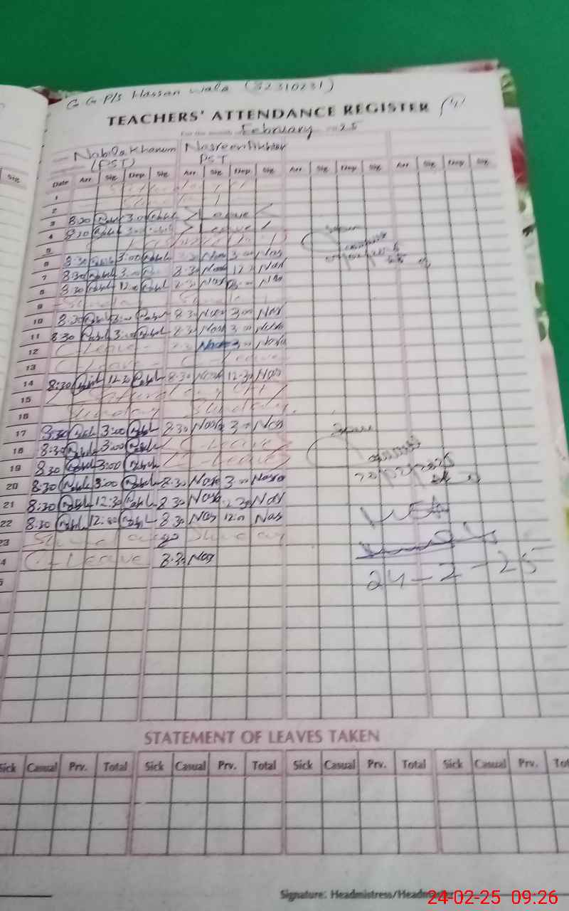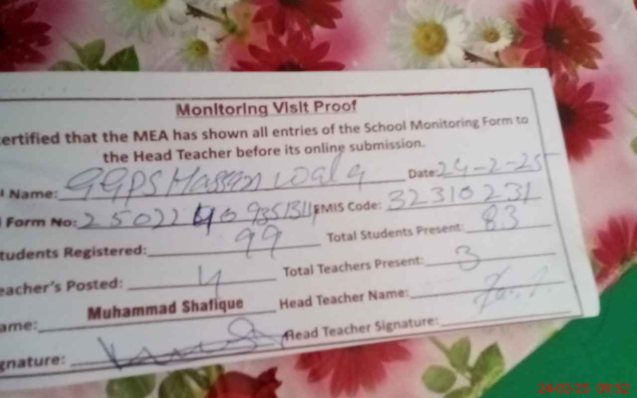 | EMIS Code: 32310231 | Name of School: GGPS HASSAN WALA | |||