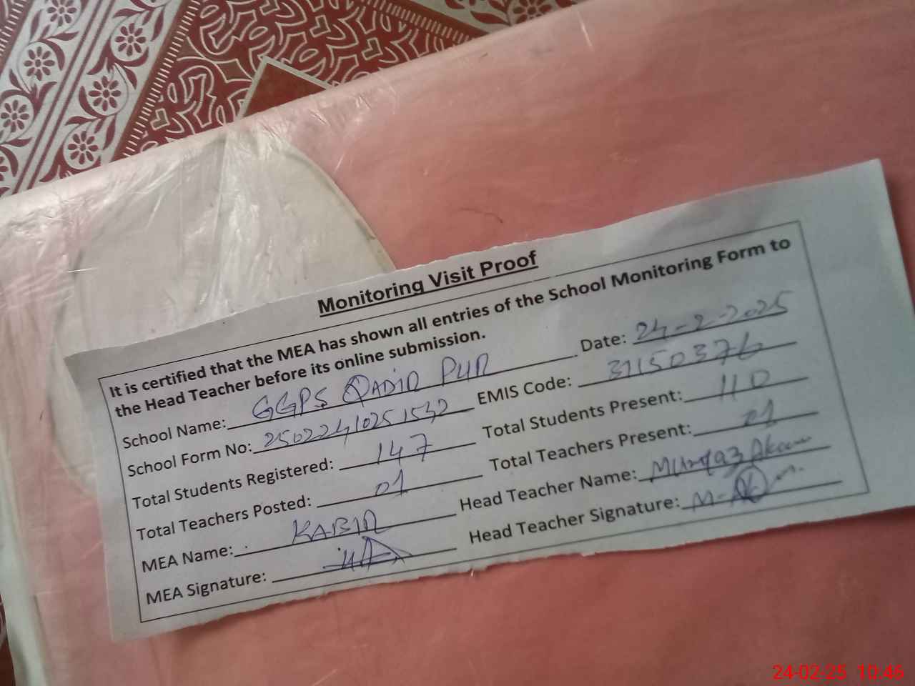 | EMIS Code: 31150376 | Name of School: GGPS QADIR PUR | |||