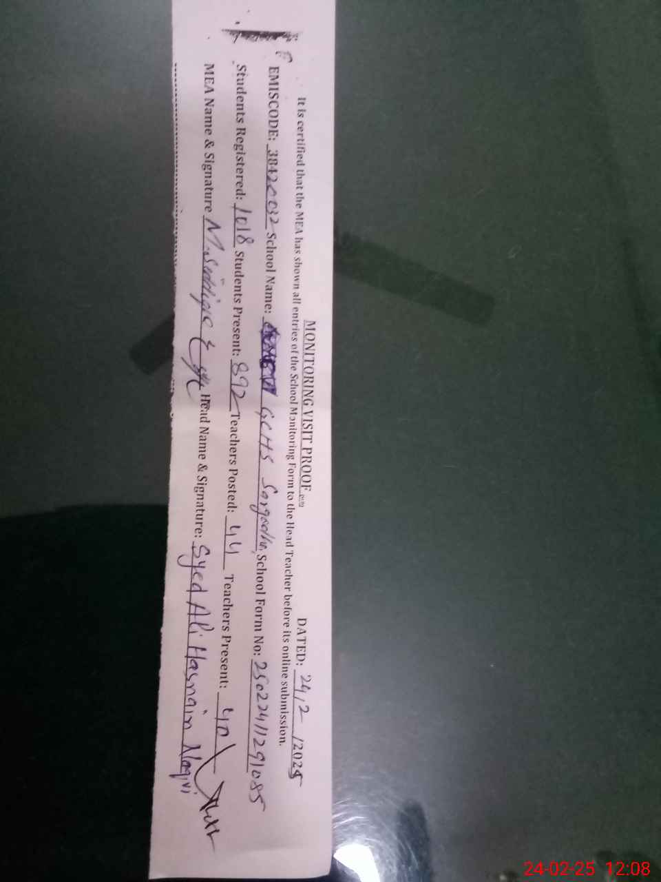 | EMIS Code: 38420032 | Name of School: GHS COMPREHENSIVE SARGODHA | |||