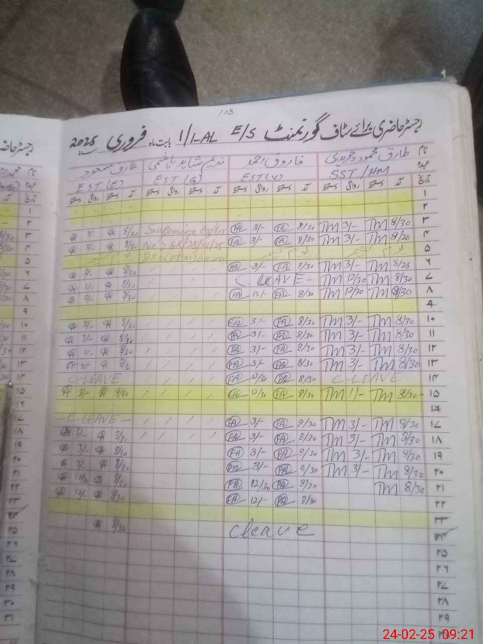 | 35**** | Ta**** Ma**** | SST | Regular | 0 | 0 | 0 | 0 | 0 | 0 | 0 | 0 | 0 | Absent (Un-Authorized) |