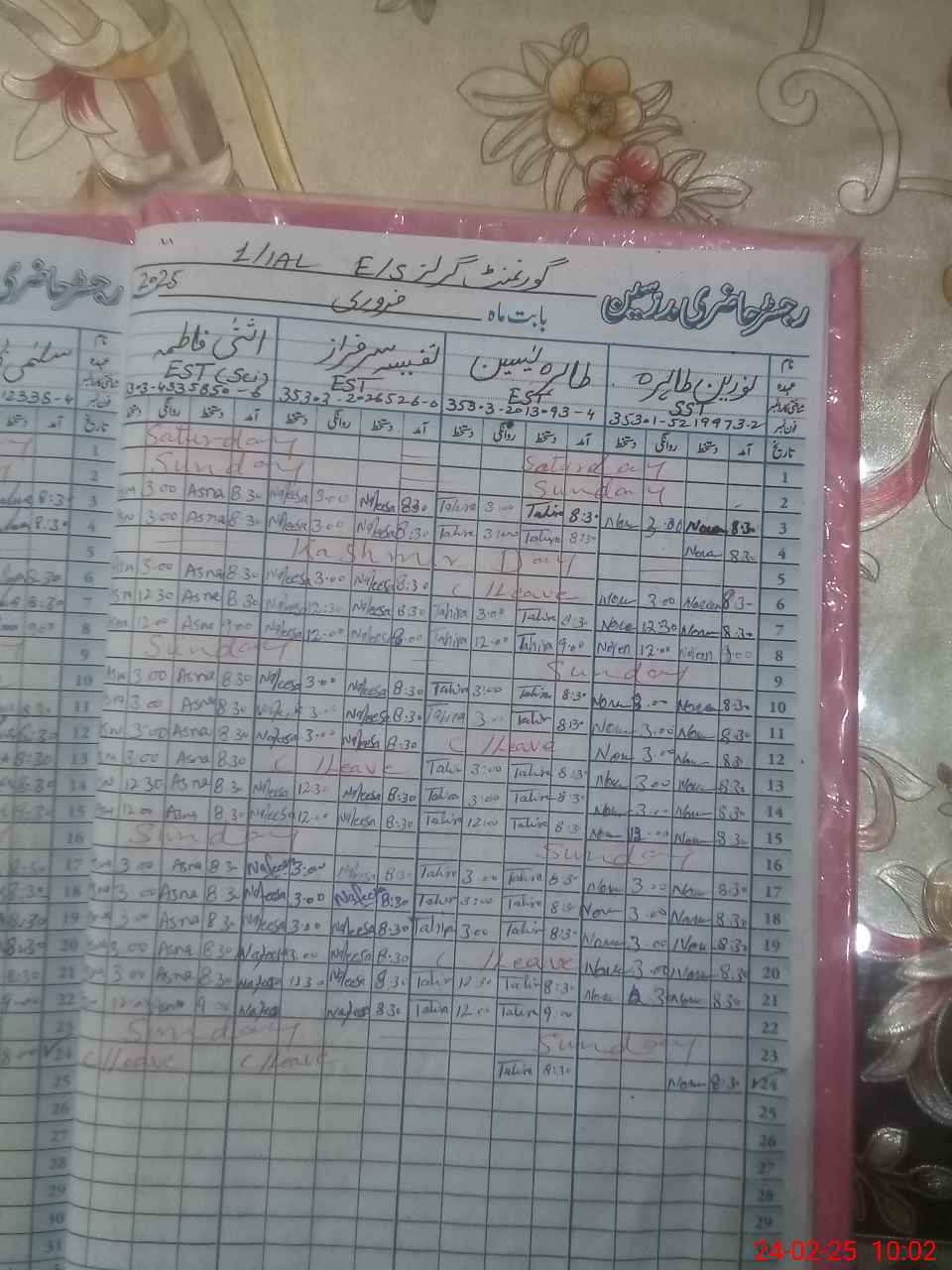 | Leave | Duty | Absent | Maternity | Medical | Ex- Pak |