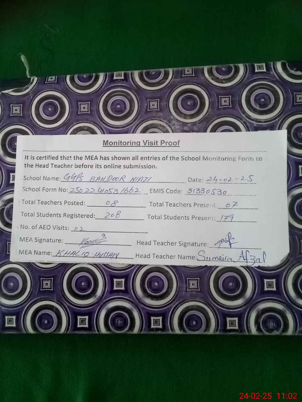 | EMIS Code: 31330530 | Name of School: GGPS BANDOOR NIAZI | |||