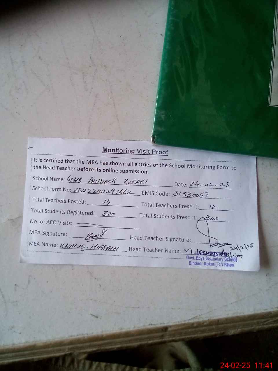 | EMIS Code: 31330069 | Name of School: GHS BINDOOR KOKARI | |||