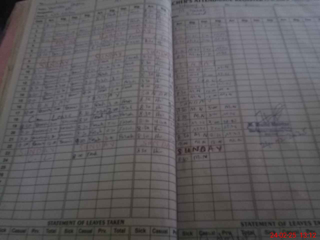 | Leave | Duty | Absent | Maternity | Medical | Ex- Pak |