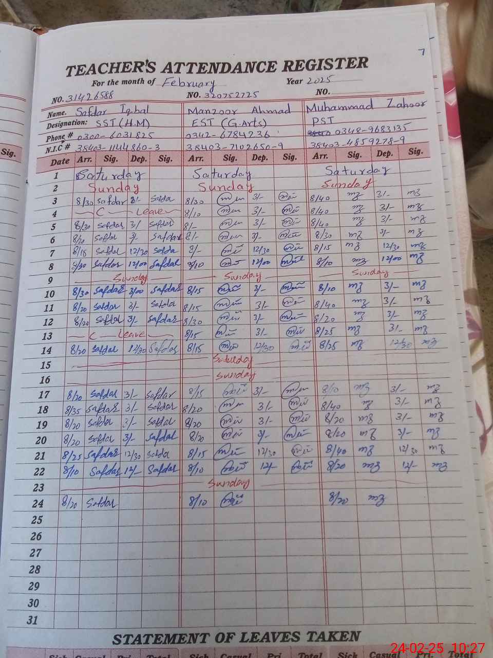 | Name: SA**** IQ**** Designation: (School Headmaster's/Headmistress's) SST Headmaster Phone/Cell Number: 03**** |