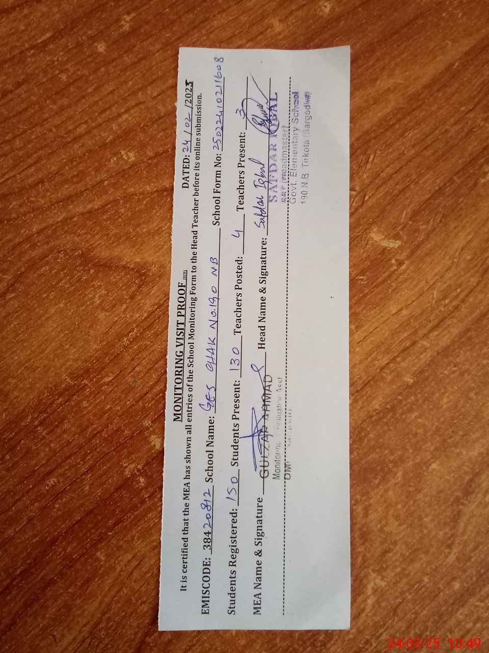 | EMIS Code: 38420812 | Name of School: GES CHAK NO.190 NB TARKOTA | |||