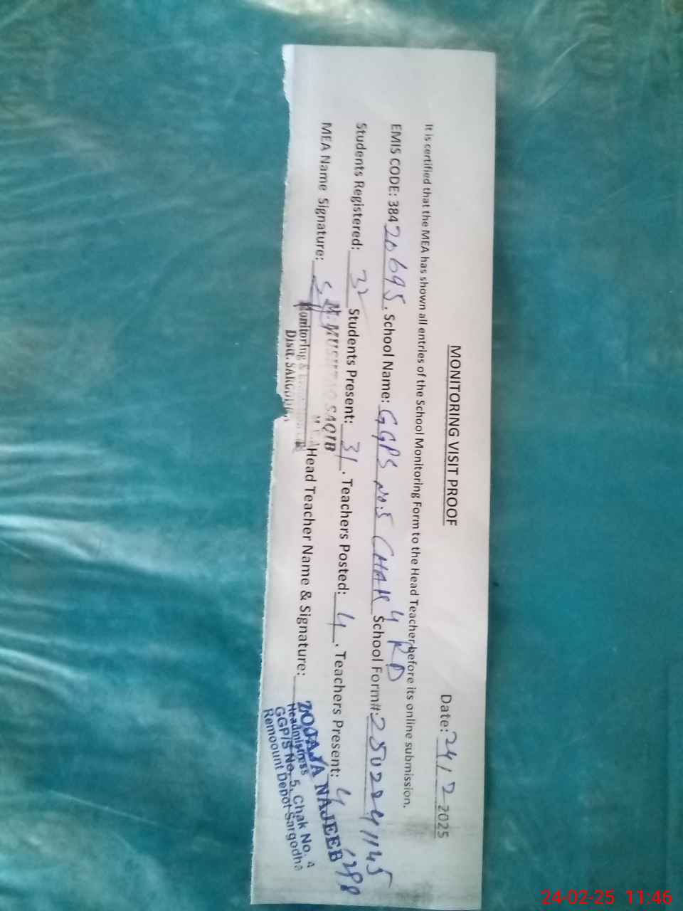| EMIS Code: 38420695 | Name of School: GGPS NO 5 CHAK NO 4 REMOUNT DEPOT | |||