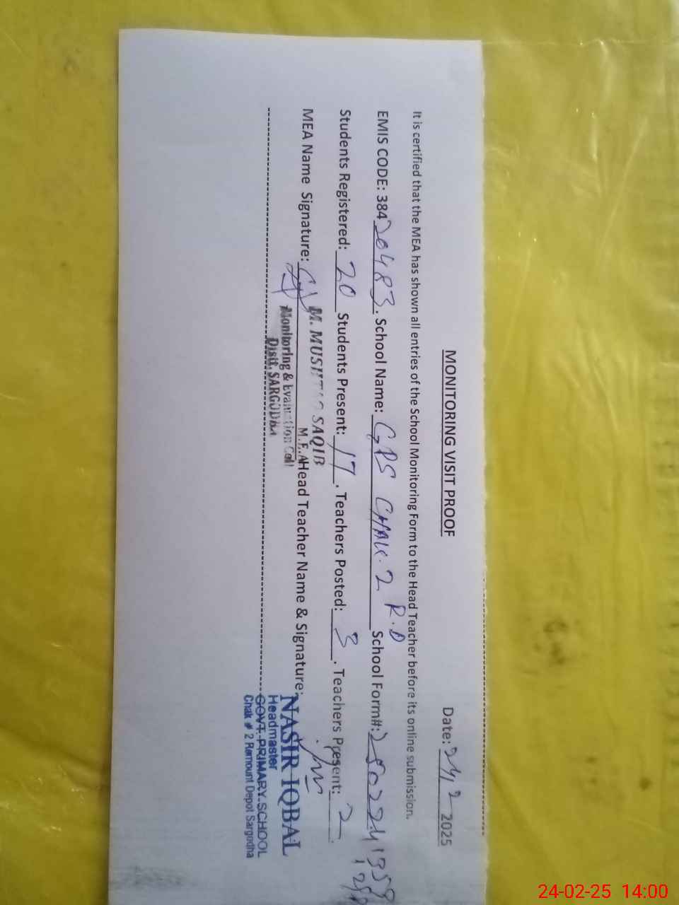 | EMIS Code: 38420483 | Name of School: GPS CHAK NO.2 REMOUNT DEPOT | |||