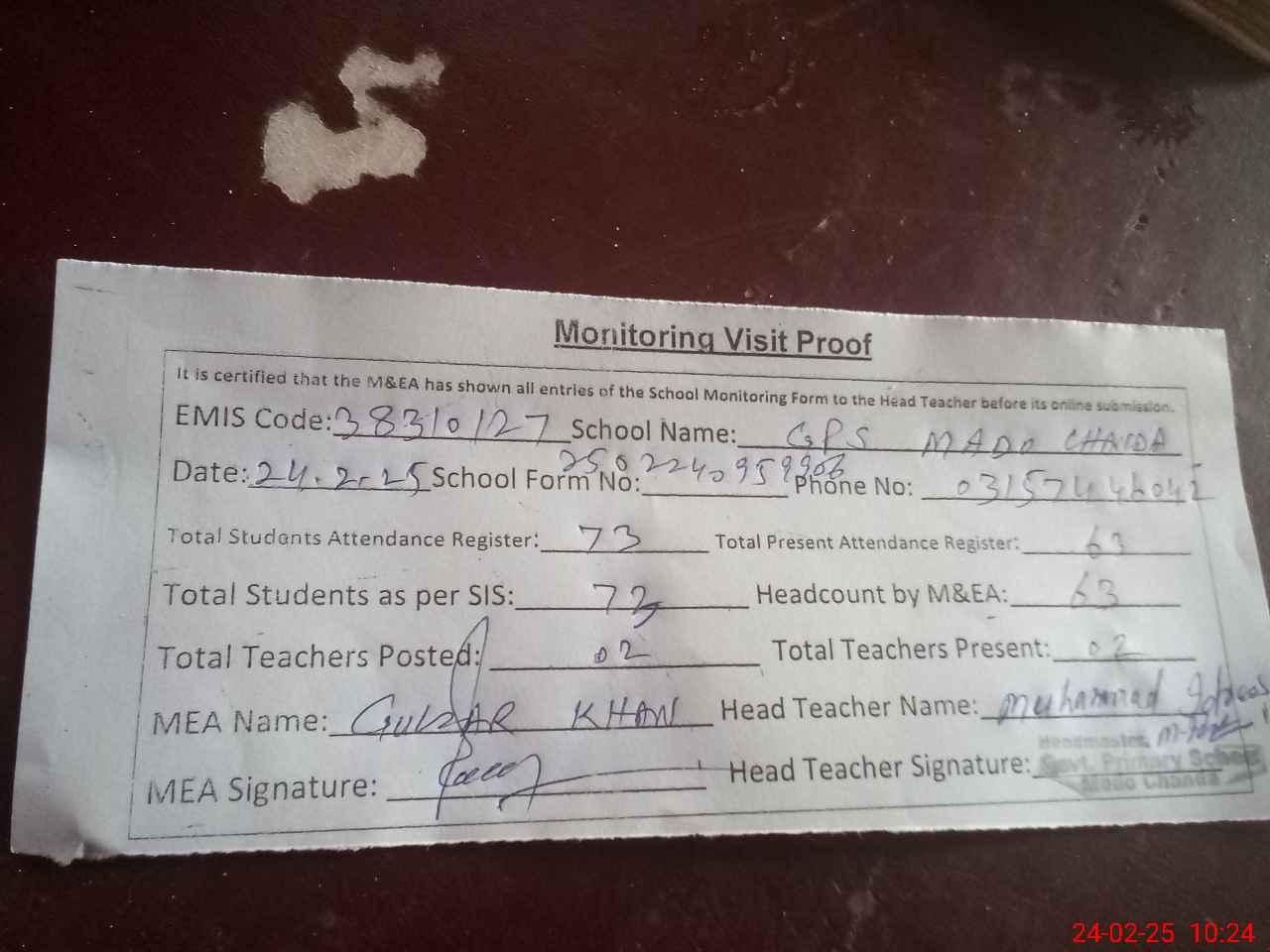 | EMIS Code: 38310127 | Name of School: GPS MADO CHANDA | |||