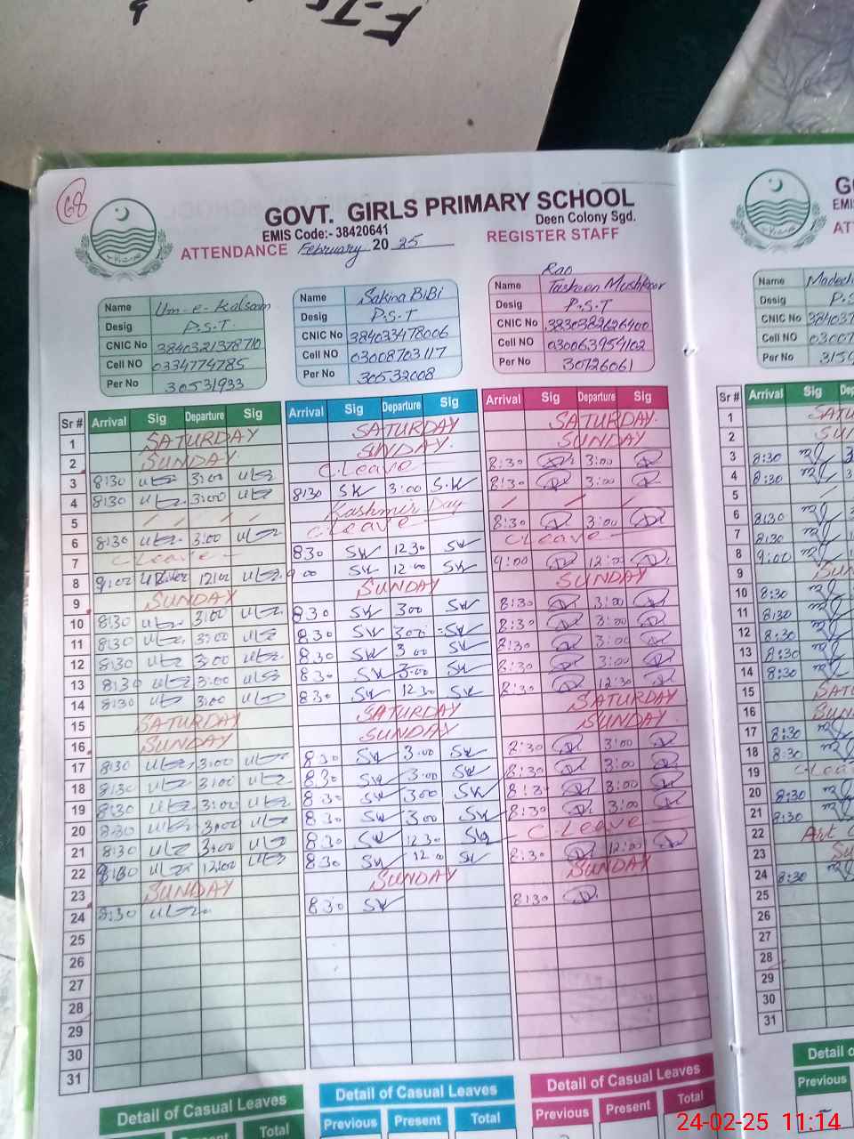| 38**** | Sh**** Hu**** | SCHOOL GAURD | Contract | 0 | 0 | 0 | 0 | 0 | 0 | 0 | 0 | 0 | Casual |