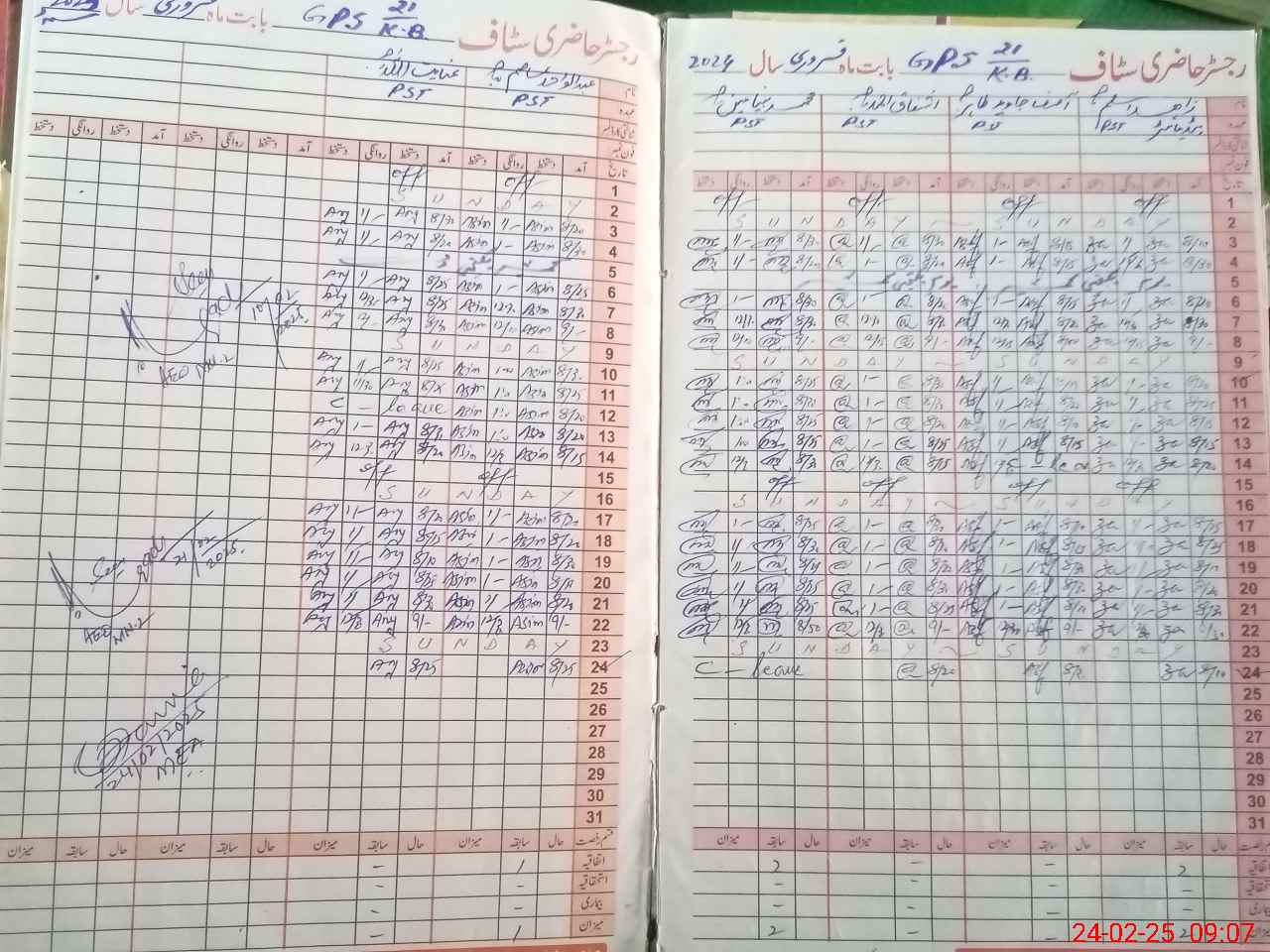 | CNIC | Full Name | Designation | R/C | Absence during last cal. month |