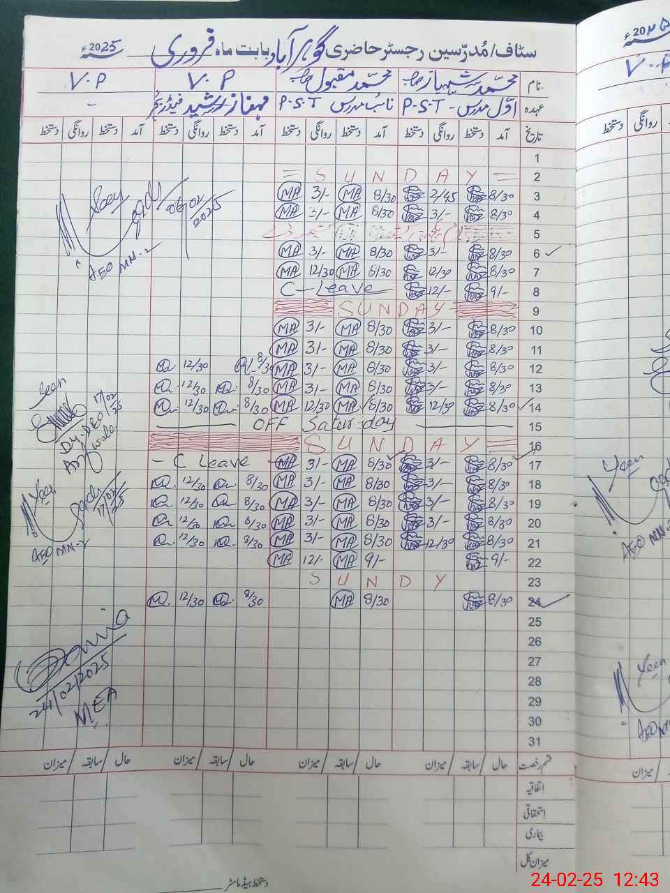 | Name: MU**** SH**** Designation: (School Headmaster's/Headmistress's) PST Phone/Cell Number: 03**** |