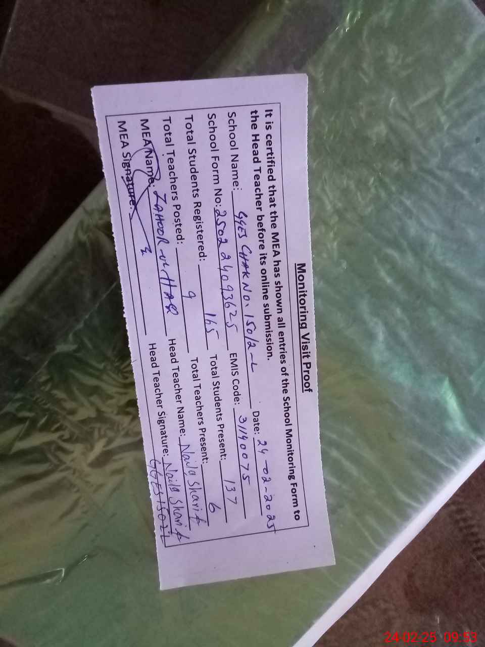 | EMIS Code: 31140075 | Name of School: GGES CHAK NO. 150/2-L | |||