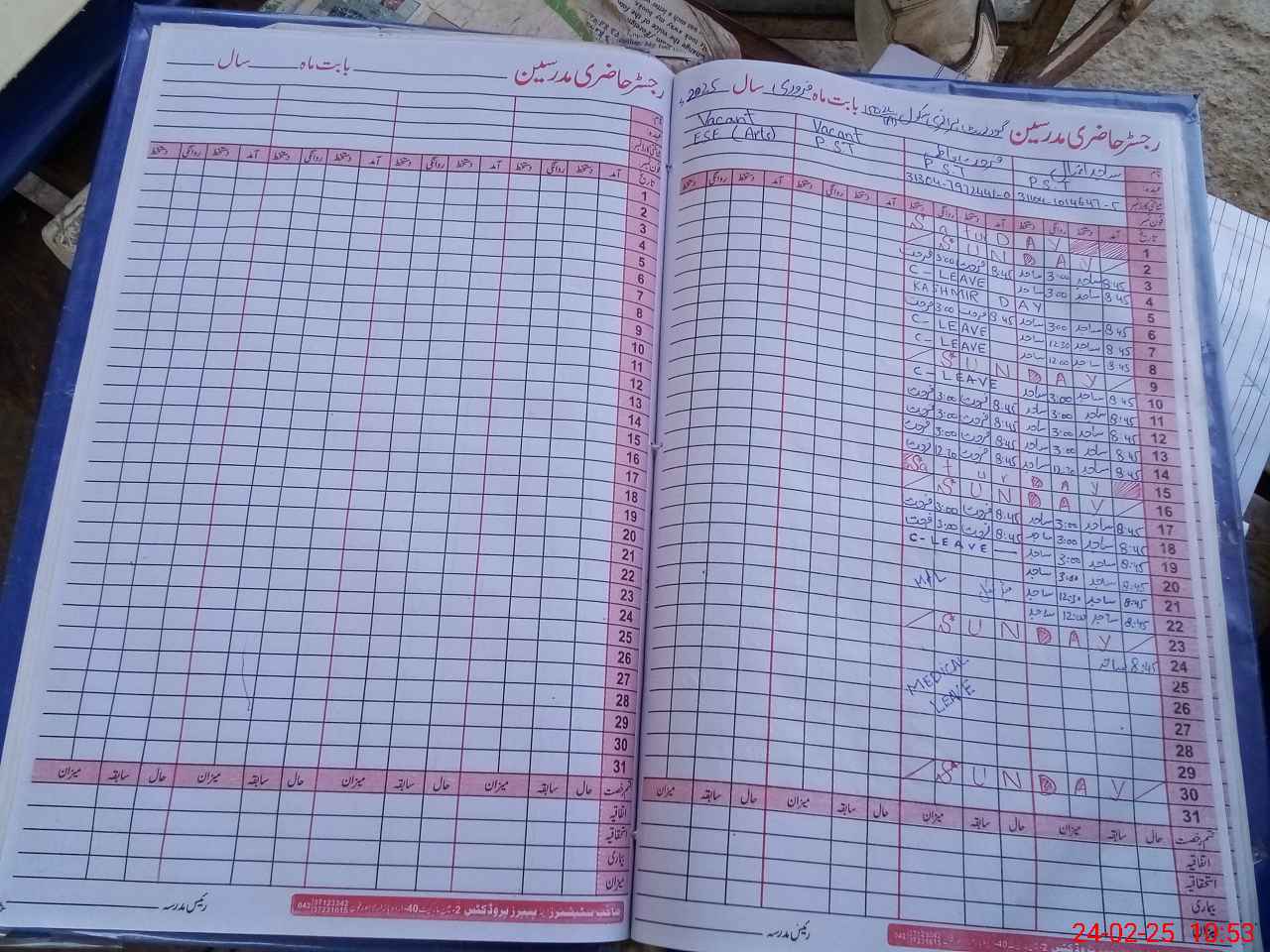 | CNIC | Full Name | Designation | R/C | Absence During Last Calender Month |