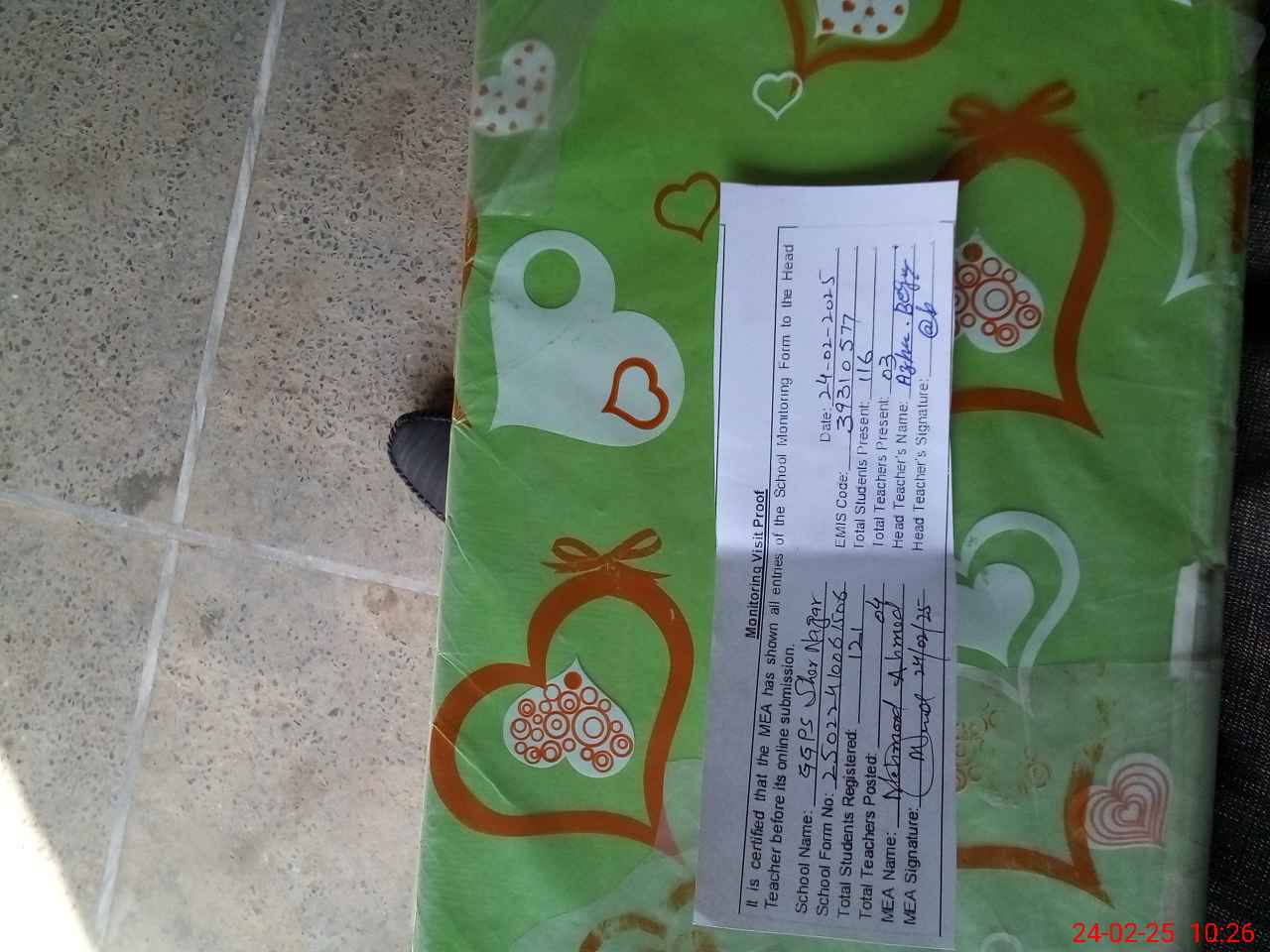 | Attendance Register | Head Teacher | MEA with School | Visit Proof |