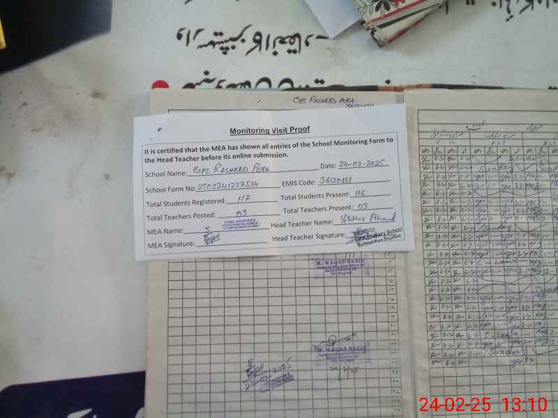 | EMIS Code: 36120133 | Name of School: GPS RASHEED PURA P/O MOUZA KHANPUR QAZIAN TEH. SHUJA ABAD | |||