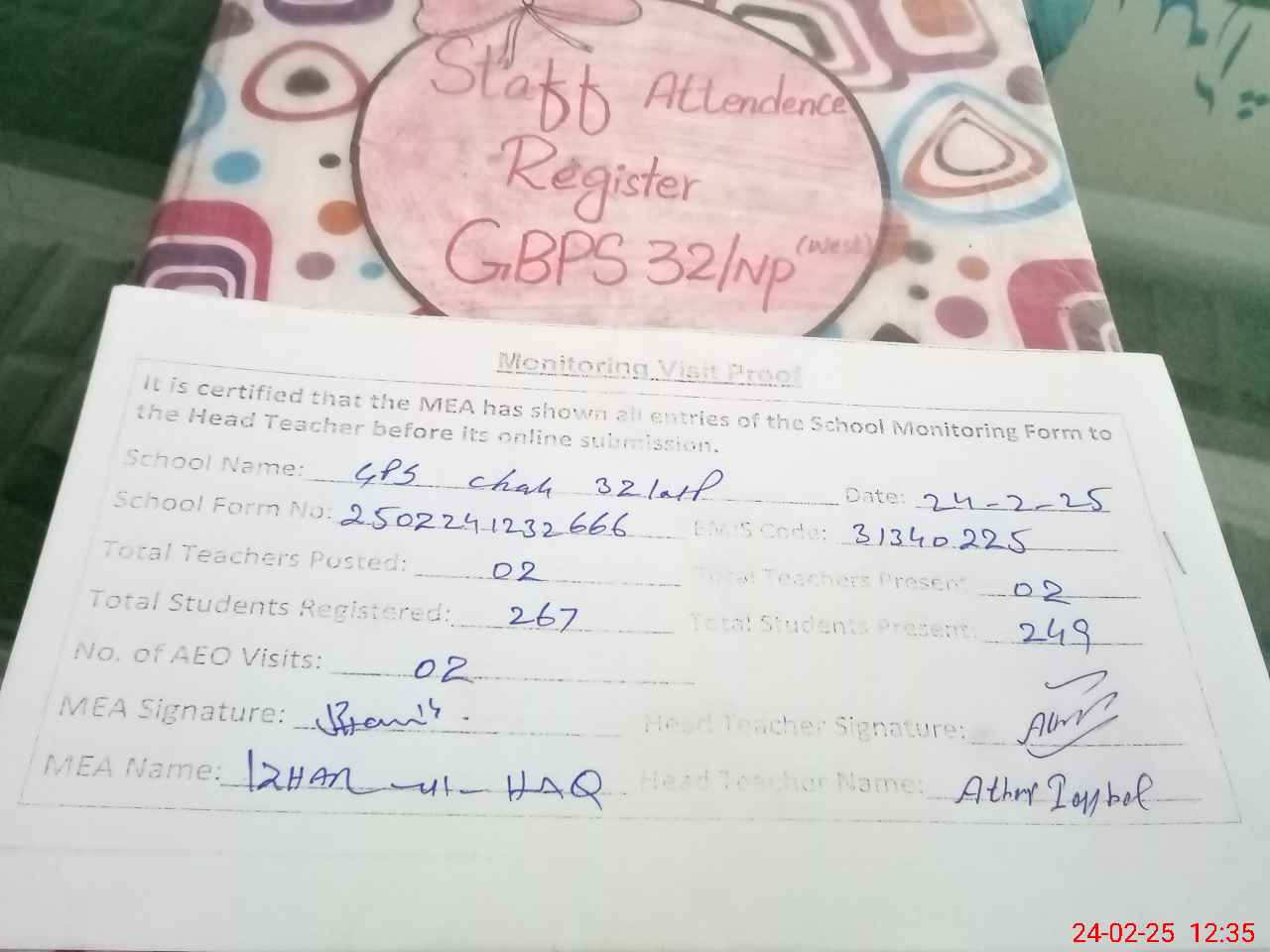 | EMIS Code: 31340225 | Name of School: GPS CHAK NO. 32 WEST | |||