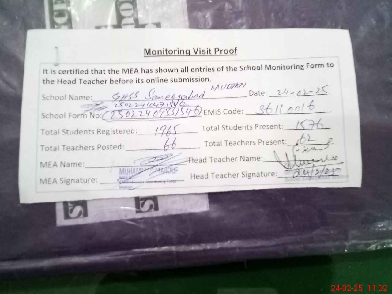 | EMIS Code: 36110016 | Name of School: GHSS SAMEEJABAD MULTAN | |||