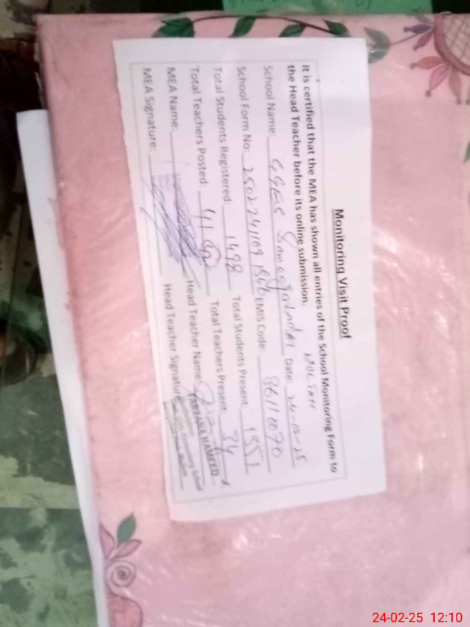 | Certified that this School was Inspected by the Undersigned MEA/DMO Today and the Information Stated Above is as Per Record. | |||||