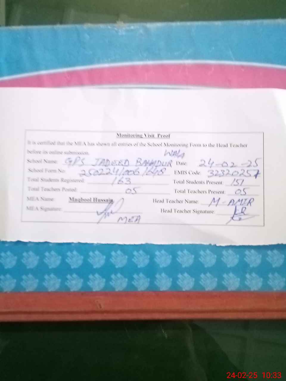 | EMIS Code: 32320257 | Name of School: GPS JADEED BAHADUR WALA | |||