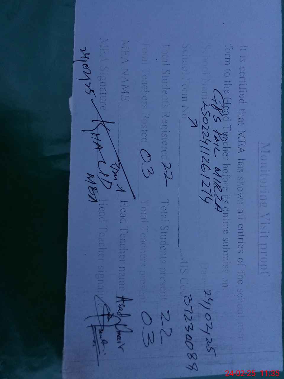 | Certified that this School was Inspected by the Undersigned MEA/DMO Today and the Information Stated Above is as Per Record. | |||||