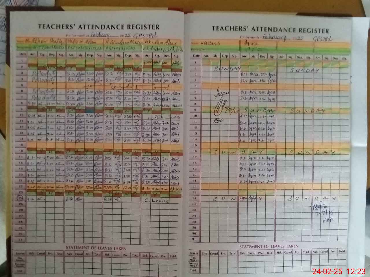 | Leave | Duty | Absent | Maternity | Medical | Ex- Pak |