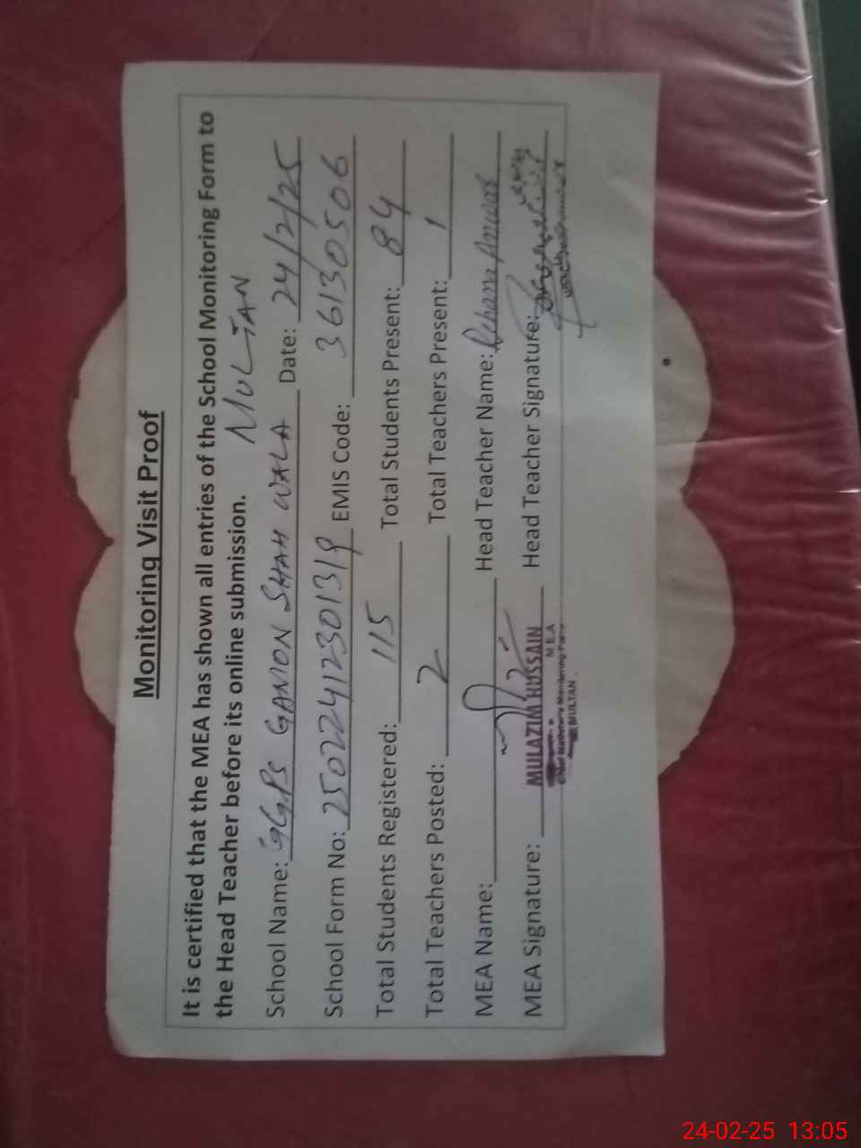 | EMIS Code: 36130506 | Name of School: GGPS GAMON SHAH WALA | |||