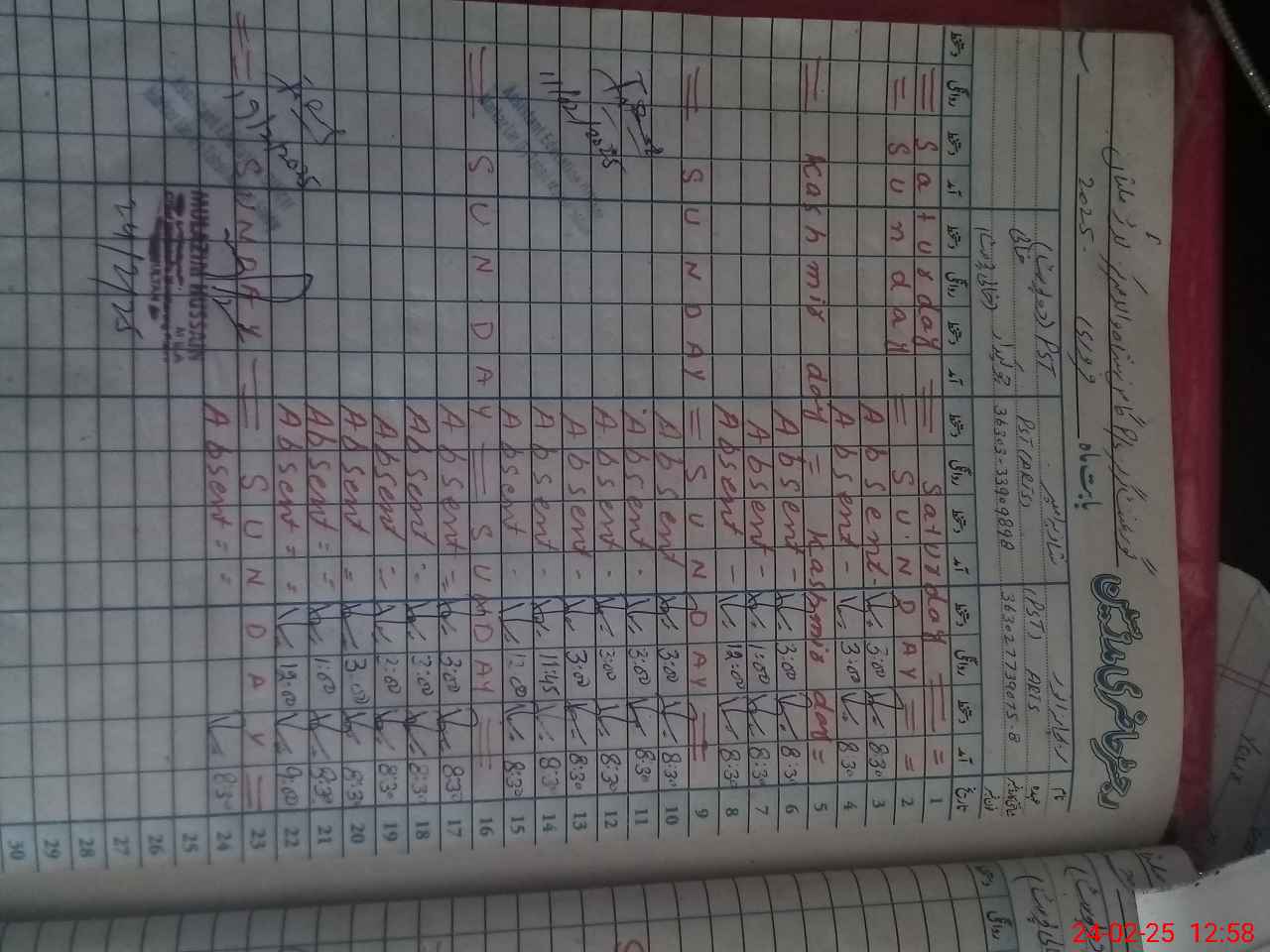 | Remarks (Use Separate Page if Required): Teacher Shazia Ameer absent from 15 august 2024 001 intern teacher present in school no soap 01 room need to paint quickly | |||||